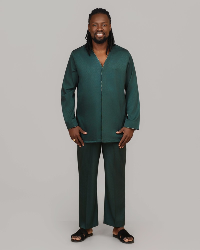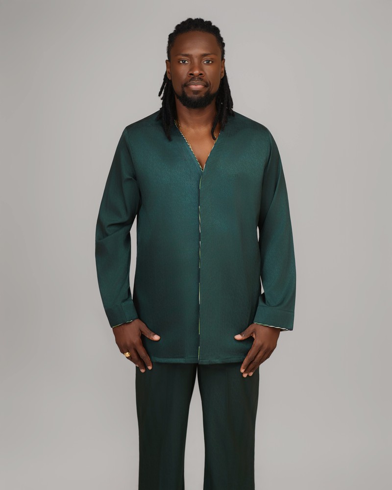 L’ensemble Saphir Émeraude incarne l’élégance naturelle et la sobriété du style masculin contemporain. Conçu pour l’homme moderne qui recherche à la fois distinction et confort, cet ensemble deux pièces offre une coupe fluide et épurée qui valorise la prestance sans ostentation.