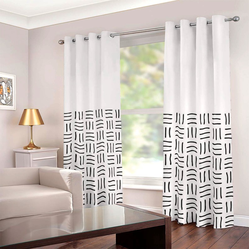 Introduce a bold look to your space with these Ethiopian Curtains. The black symbols add a daring touch, while the eyelet design makes them easy to hang. Transform your room into a daring, adventurous space with these two-piece curtains.