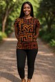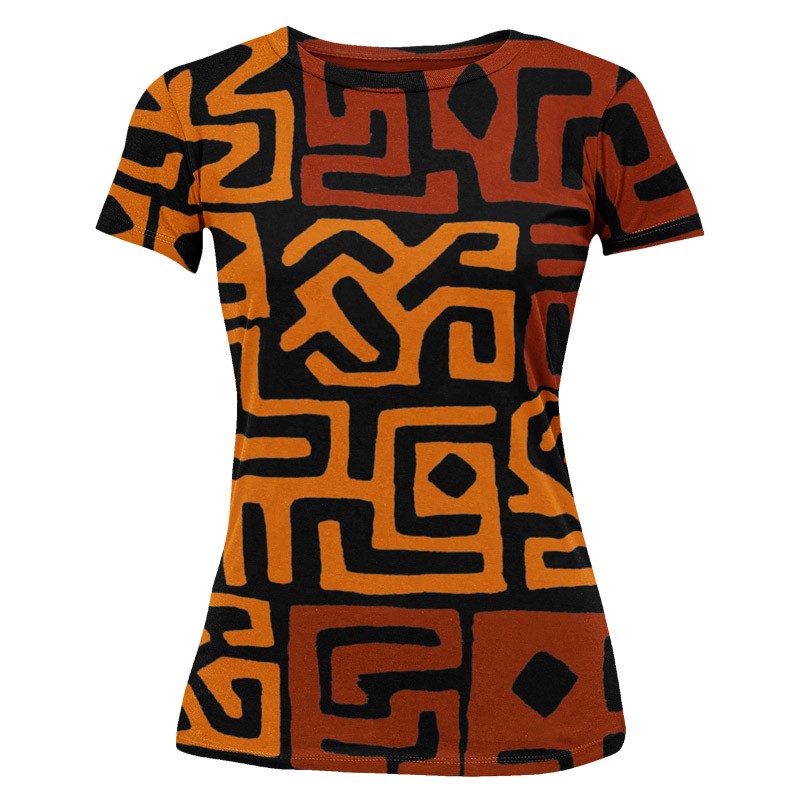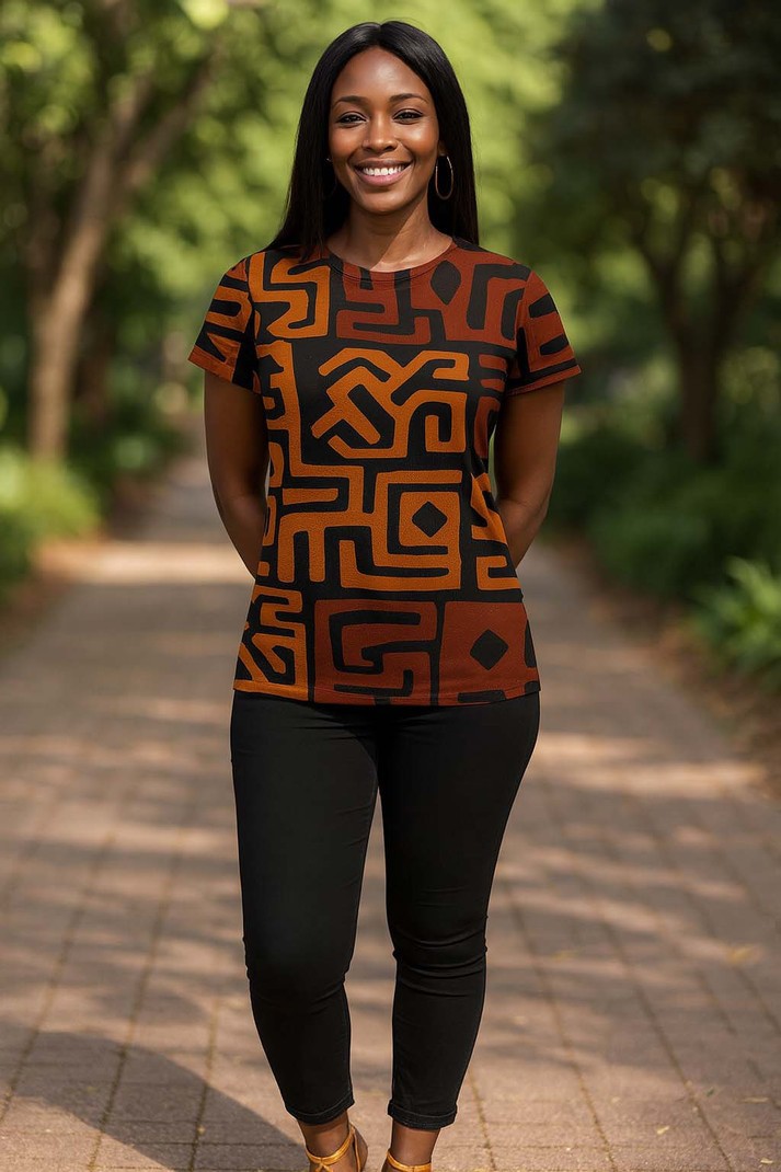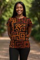 Introducing our Afrocentric Kuba Print Women T-shirt, featuring a stylish and bold Kuba print design. Made from high-quality materials, this t-shirt is perfect for women who want to make a statement with their fashion choices. Show off your cultural pride and stand out with this unique and eye-catching t-shirt.