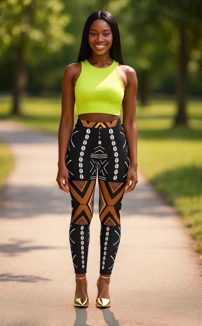 Get ready to make a statement with our Ethnic Leggings! These African Mud Cloth Cowrie Print leggings will add a touch of culture to any outfit. Made with high-quality materials, they offer both comfort and style. Don't be afraid to stand out and embrace your unique sense of fashion! Product Features Please Compare your Measurements To our Size Chart before purchase • Fabric is 82% polyester, 18% spandex • Four-way stretch • Elastic waistband • Precision-cut and hand-sewn • Fabric weight: 6.61 oz/yd² (224 g/m²) • 38-40 UPF • Overlock and coverstitch • Printed, cut, and hand-sewn by our in-house team • Four-way stretch, which means fabric stretches and recovers both on the cross and lengthwise grains • Made of a microfiber yarn, which is smooth and comfortable Delivery Time This item will be processed within 3-7 business days (Excluding Weekends and Holidays). Once products ships it can take up to 15 Business days depending on your location. Out of Stock items can be requested by emailing us at [email protected] Care Instructions Machine wash cold inside out. Gentle cycle with mild detergent and like colors. Do not use bleach or fabric softener. Do not tumble dry. Hang to dry to ensure maximum shelf life. Iron inside out if necessary. Do not iron the print. Do not dry clean.