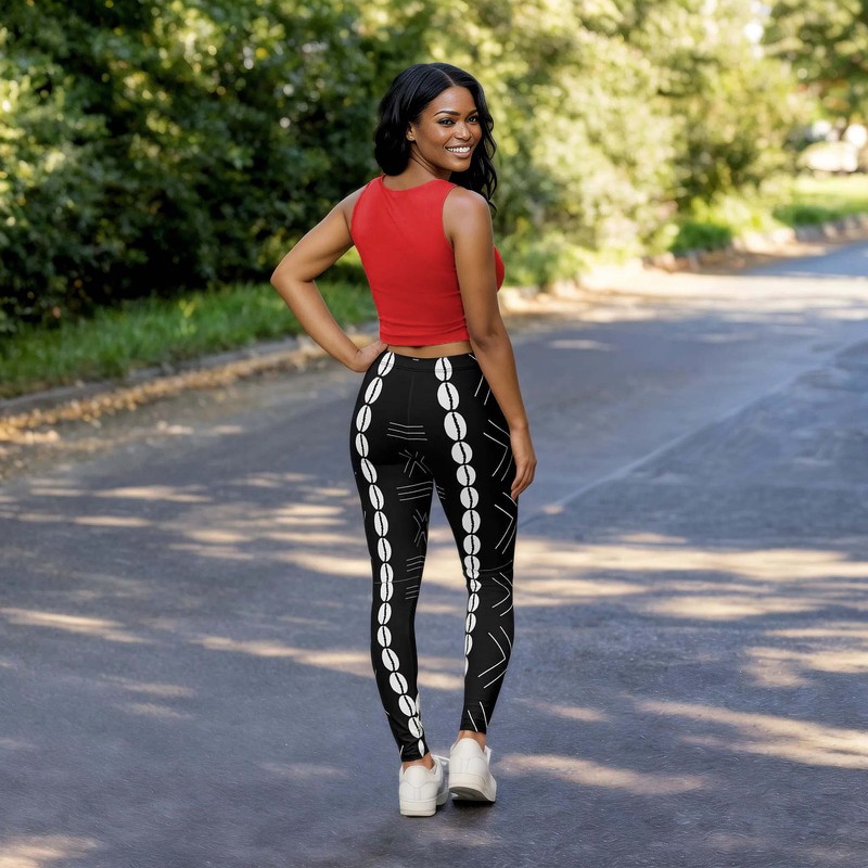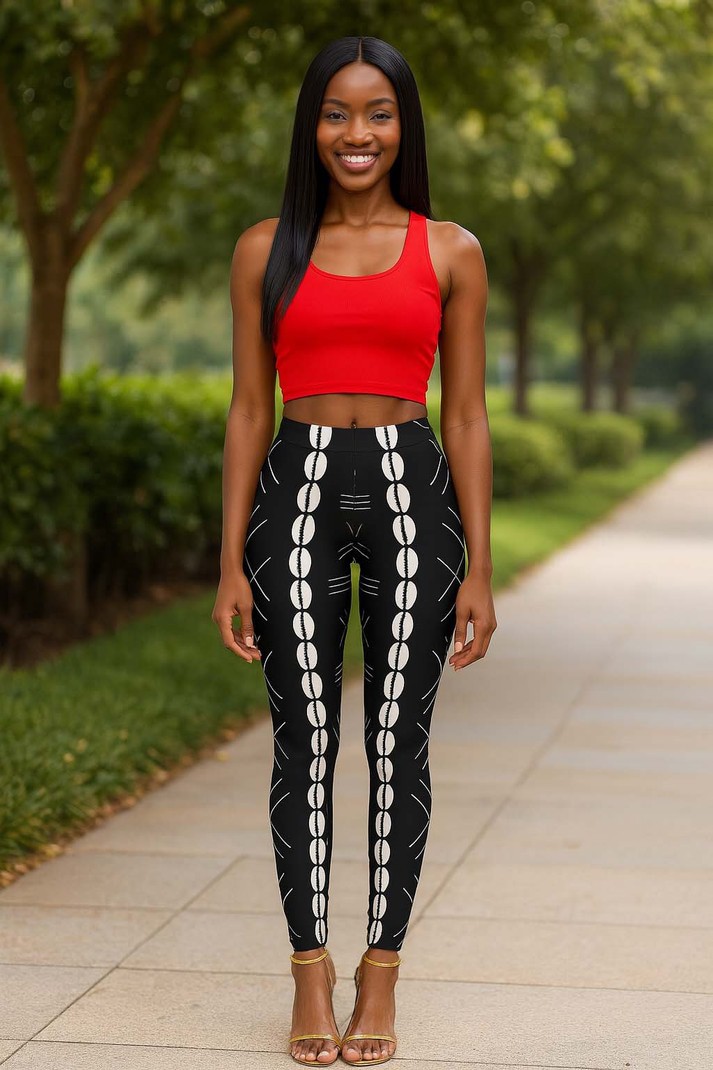 Get ready to make a bold fashion statement with our Ethnic Leggings for Women! These vibrant leggings feature an eye-catching African Cowrie Print that will turn heads and add some personality to any outfit. The perfect combination of comfort and style, these leggings are a must-have for any fashion-forward woman.