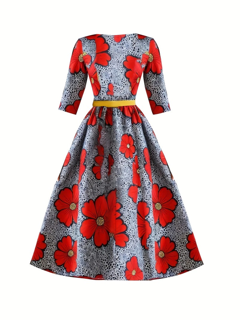 Women Dresses Mid-length Dresses name_en: Straight name_en: Multicolour name_en: For Her name_en: Ankara
