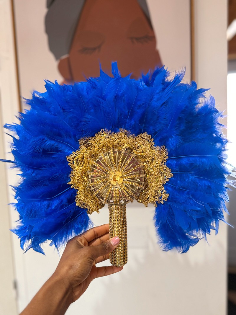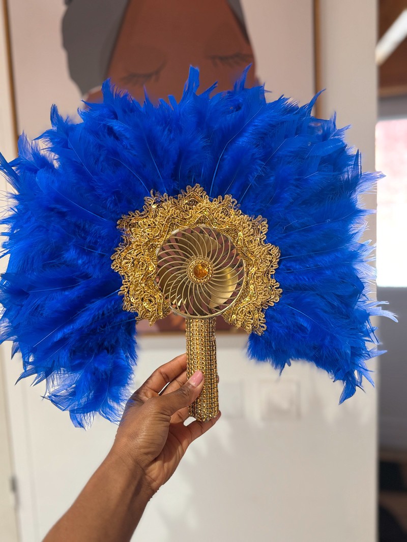 Alliez raffinement et technologie avec cet éventail unique en son genre, conçu pour sublimer vos gestes tout en vous offrant une brise légère. Orné de plumes délicates, il est décoré de garnitures (perles, strass ou broderies – selon modèle), et cache astucieusement un ventilateur discret intégré pour un confort absolu, même en pleine chaleur.