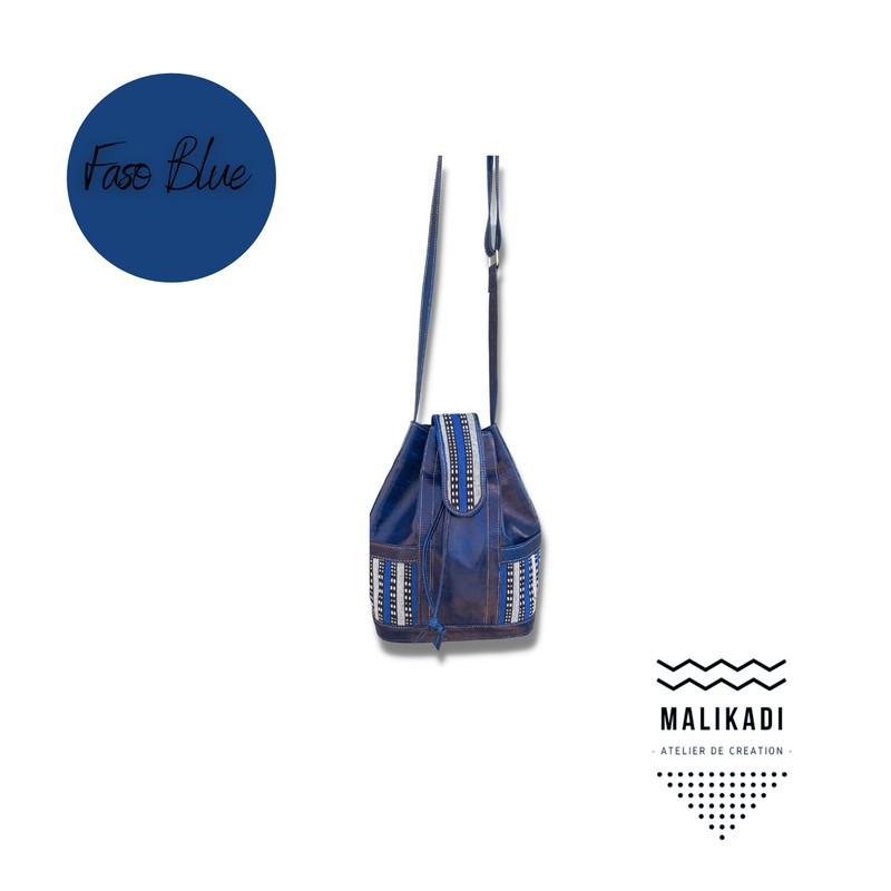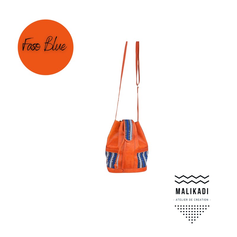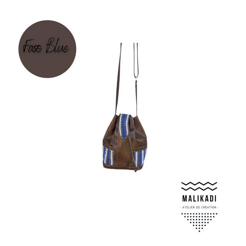 Leather bags and faso danfani. Made in Mali. The faso danfani is a Burkinabe fabric which means woven loincloth from the homeland.