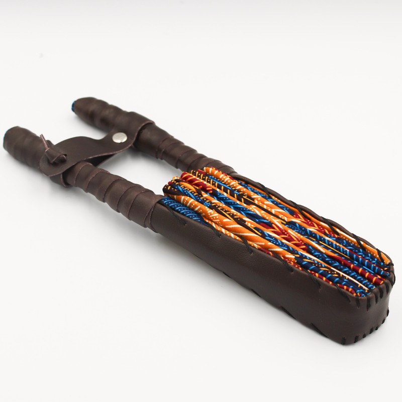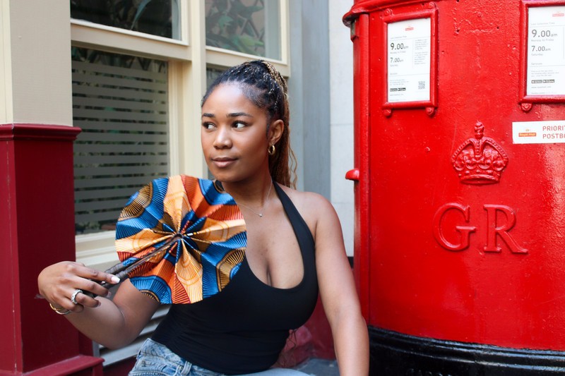 Each fan is expertly handmade in West Africa using 100% cotton Ankara fabric, pleated and reinforced for structure. It’s finished with a sleek black vegan leather handle and a secure fastening strap, designed for effortless folding and chic storage.