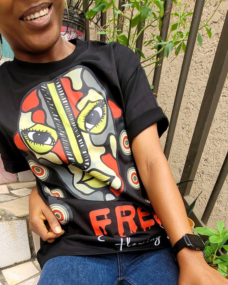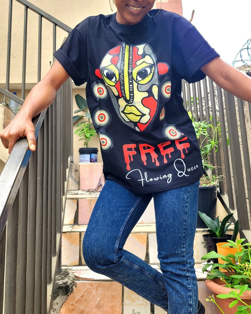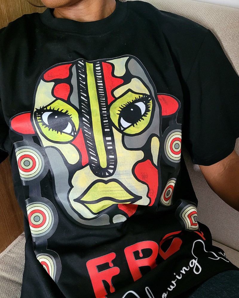 Bold, free, and unapologetic. This tee carries our African mask inspired artwork, a design that speaks of power & presence. The eyes stare right back, reminding you not to shrink or hide. Cut from soft, breathable 100% cotton with a relaxed fit, it’s made to move with you and keep you comfortable all day. And it’s more than just a T-shirt: every purchase helps provide menstrual kits for young girls, breaking shame and rewriting the story of periods. Wear it loud. Wear it proud.