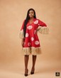 Add a touch of playful elegance to your collection with this Shift Dress. Designed with striking circle in warm tones of red and white, it elongates the figure while the soft fringed hem and sleeves add a fun, textured flair. The relaxed fit and V-neckline make it ideal for both casual and special occasions. Pair with strappy heels or sandals for a chic finish that turns heads effortlessly.