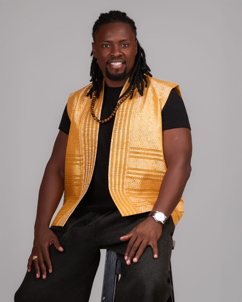 Le gilet « Or Solaire » célèbre la puissance du style à travers la lumière. Confectionné dans un tissu doré à motifs géométriques tissés, il conjugue tradition et modernité. Sa coupe droite sans manches met en valeur la silhouette tout en affirmant une élégance chaleureuse et rayonnante.