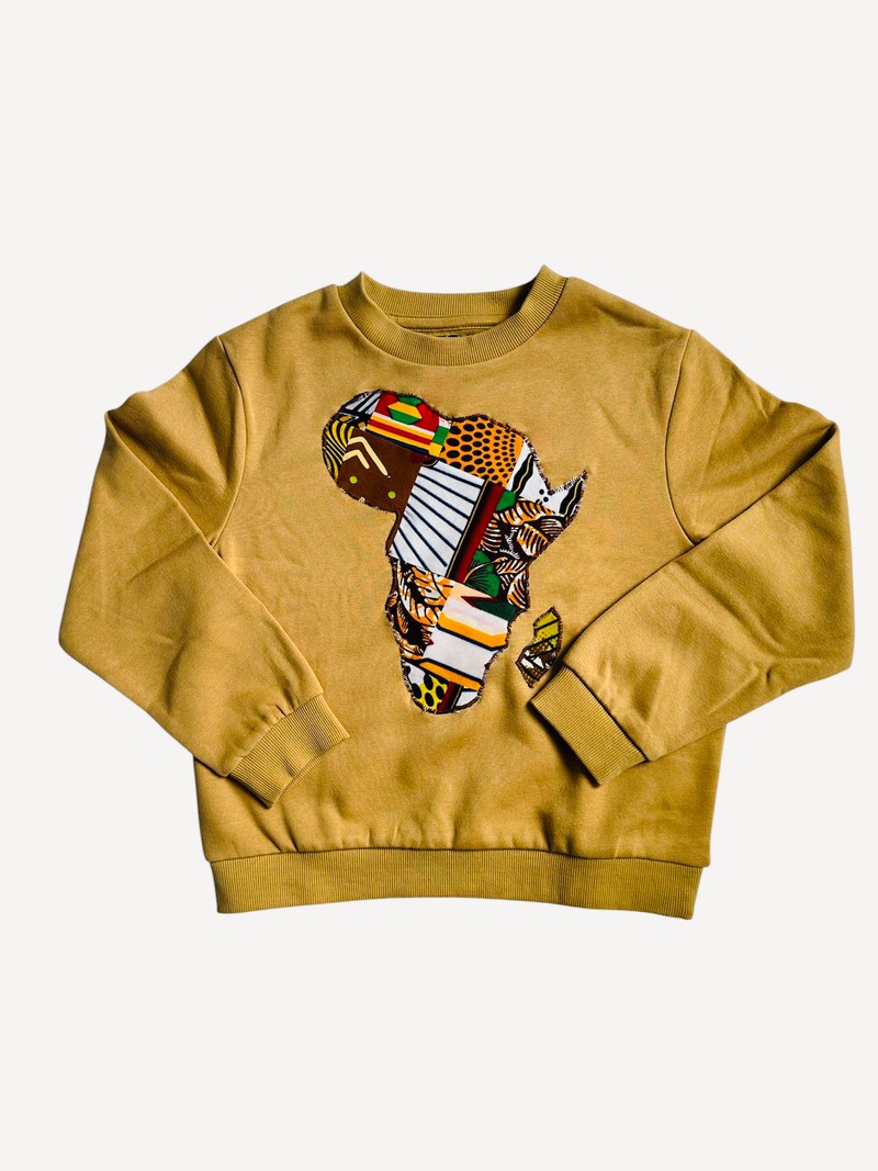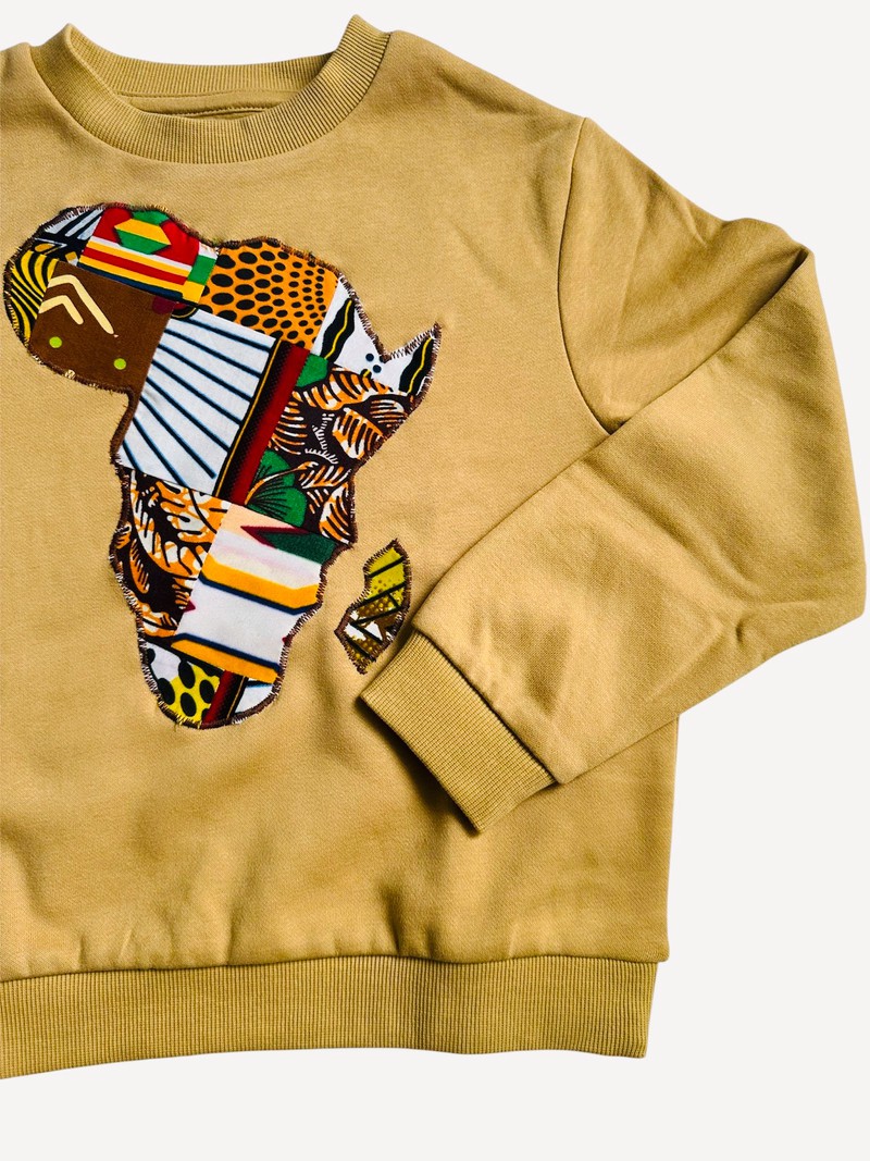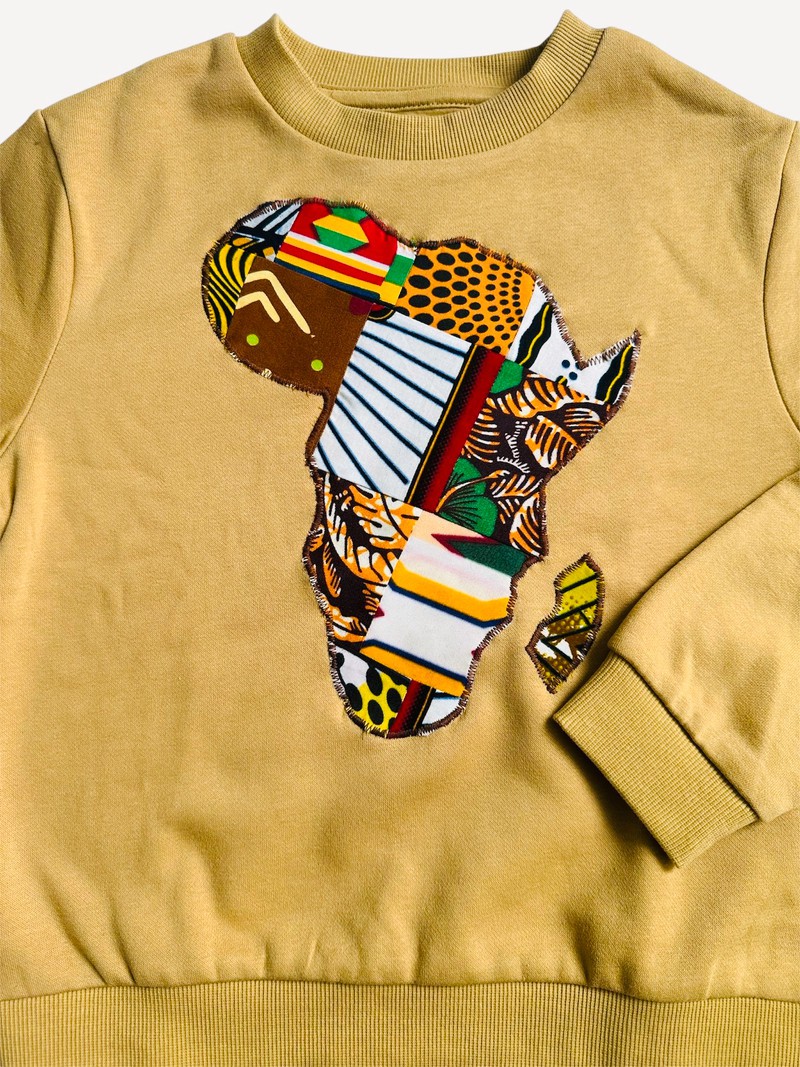 Un sweat-shirt original et lumineux ☀️, customisé avec la carte de l’Afrique en wax.