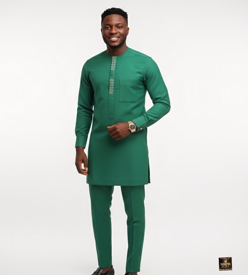 Stay effortlessly stylish in this green senator outfit, designed for the modern man who values class and culture. Crafted from smooth, durable fabric, this two-piece senator suit features elegant embroidery on the chest pocket and placket, giving it a refined finish.