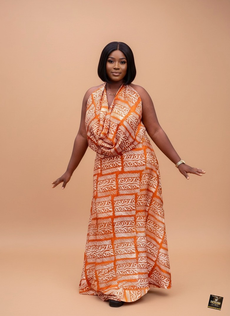 Radiate effortless sophistication in this stunning burnt orange halter-neck maxi two-pieceset, a beautiful fusion of contemporary draping and traditional artisanal craft. Expertly handcrafted from premium hand-dyed Adire cotton, the fabric features a detailed ivory geometric and linear pattern that offers a rich, textured visual appeal while remaining soft and breathable against the skin. The design is defined by its elegant cowl halter neckline that flows into a relaxed, floor-sweeping silhouette, providing a graceful and flattering drape for all body types. This versatile statement piece is the ideal choice for upscale garden weddings, beachside soirées, or destination vacations, offering a vibrant and culturally-inspired look that pairs perfectly with metallic gold sandals and minimalist accessories.