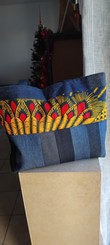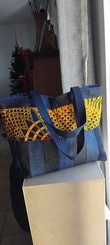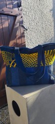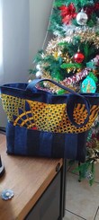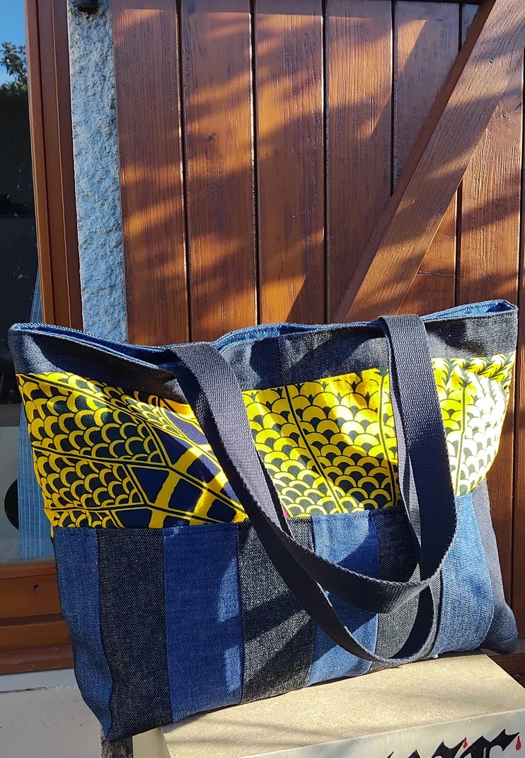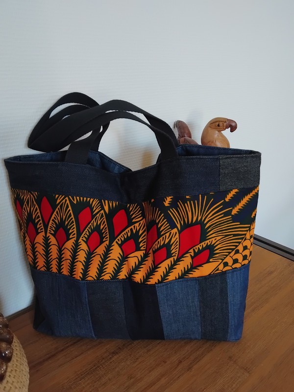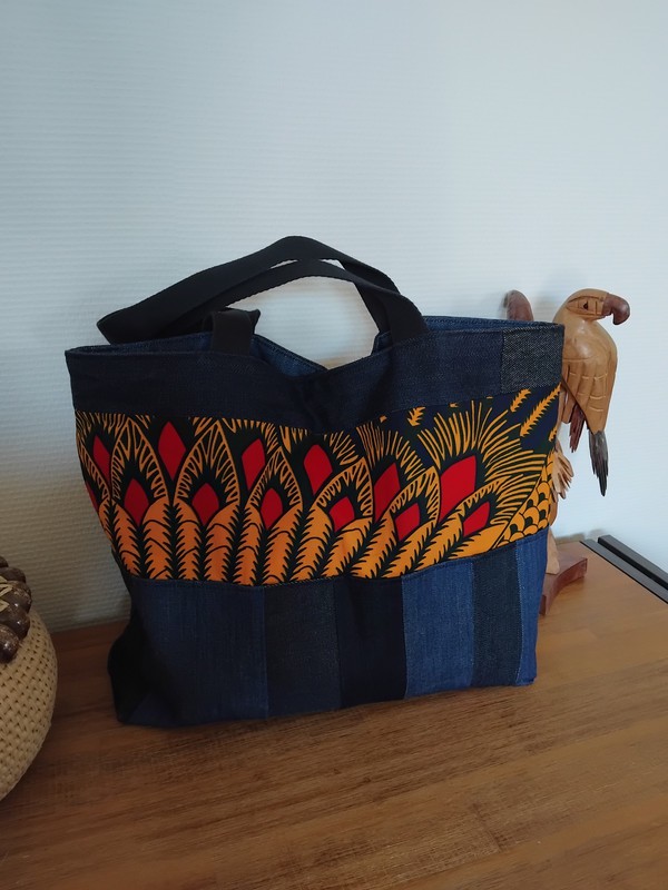 Magnifique sac à main en wax entièrement doublé en jeans,