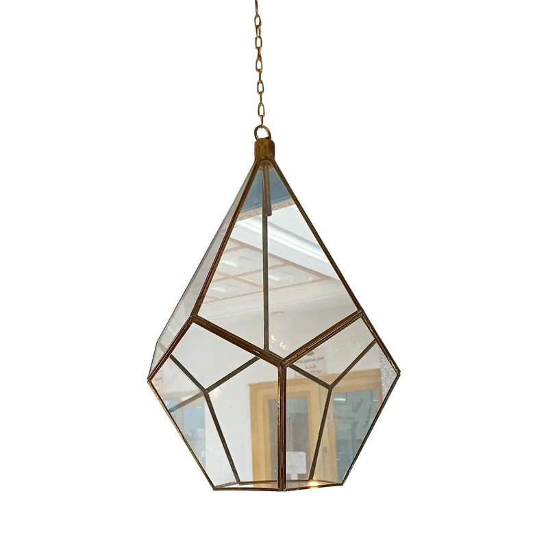 Hexagon hanging lamp in copper and glass. Modern hanging lamp with a geometric shape.