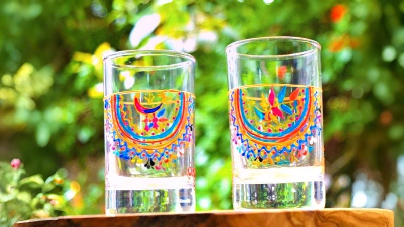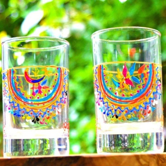 Handpainted stained tea glasses tea set made composed of 6 handpainted tea glasses.