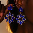 Composées de grands cristaux bleu saphir taillés en forme de pétales, elles forment une fleur luxueuse entourée de micro-strass étincelants.
