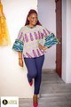 Ce haut est fait dans un mélange de wax et de tissu baoulé tissé et teint a la main.