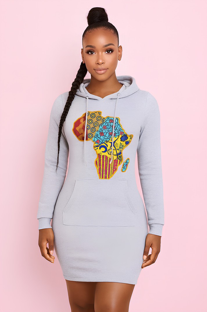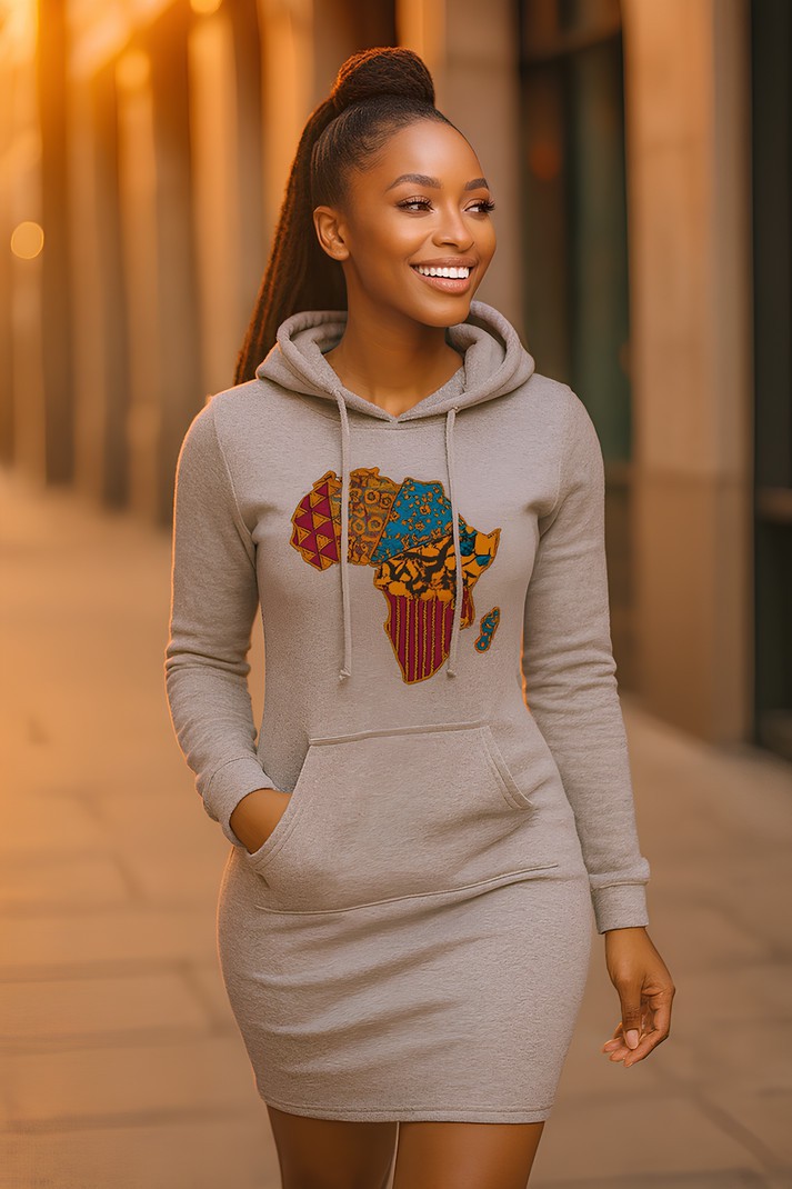 Stay cozy and stylish with our Africa map Hoodie Dress, a versatile piece that brings comfort and meaning together. Made from soft, high-quality polyester, this long-sleeve hoodie is perfect for layering in cooler weather or wearing on its own for a relaxed, effortless look.