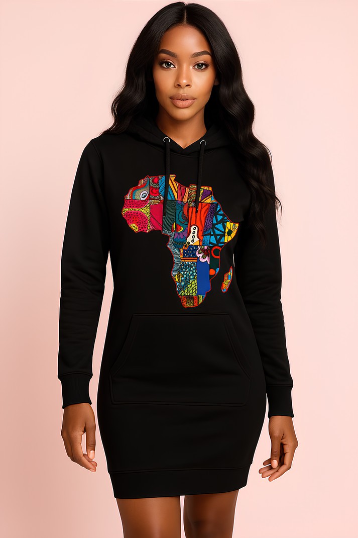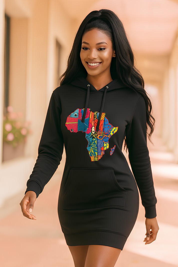 Stay cozy and stylish with our Africa map Hoodie Dress, a versatile piece that brings comfort and meaning together. Made from soft, high-quality polyester, this long-sleeve hoodie is perfect for layering in cooler weather or wearing on its own for a relaxed, effortless look.