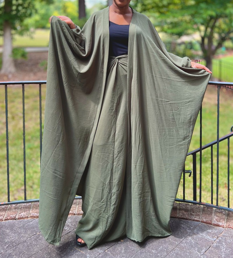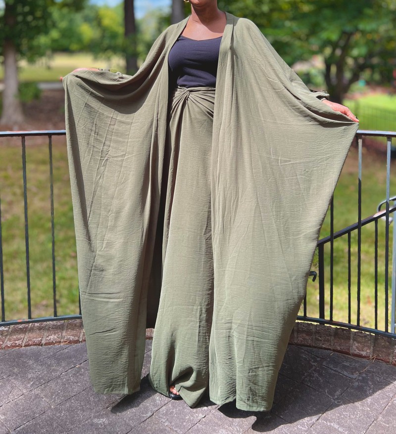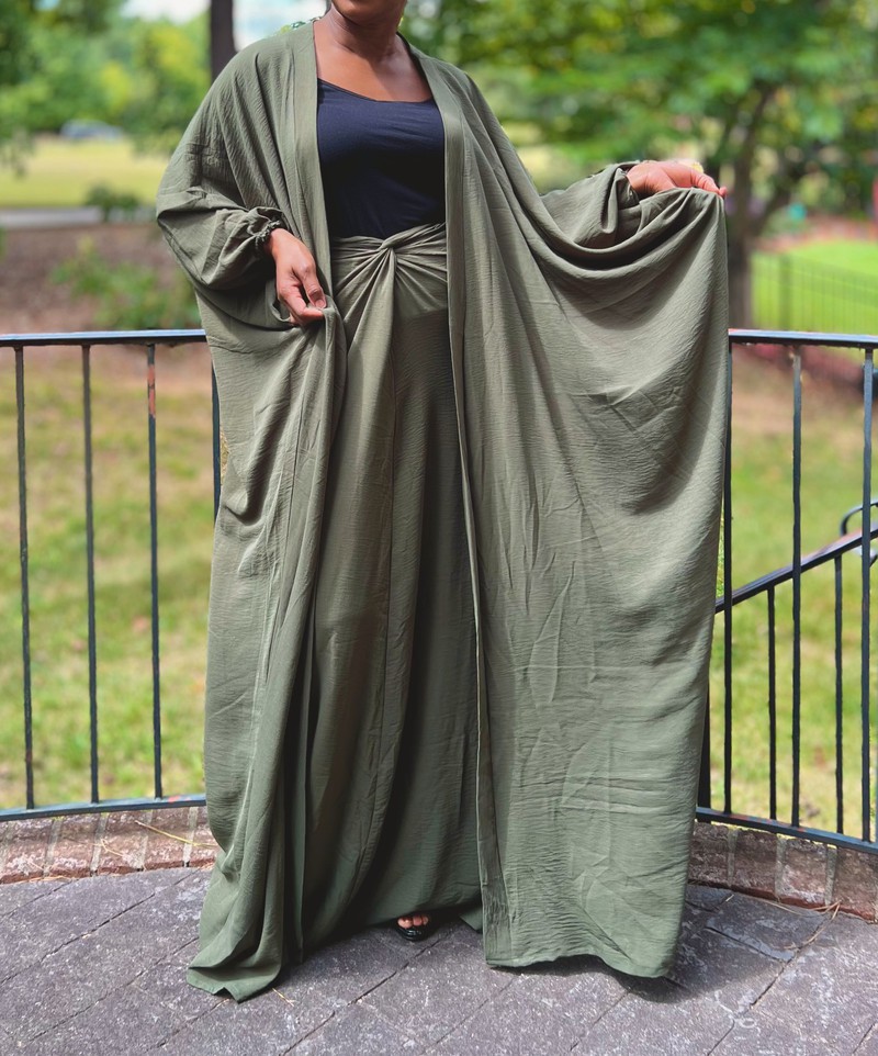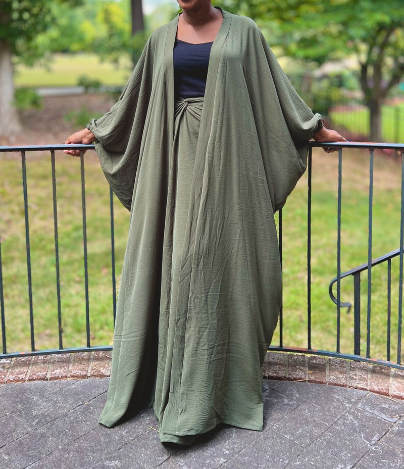 Two Piece Oversized crepe Maxi Cardigan top and wrap Skirt set