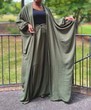 Hunter Green Two Piece Oversized Crepe Maxi Cardigan Top and Wrap Skirt Set