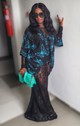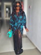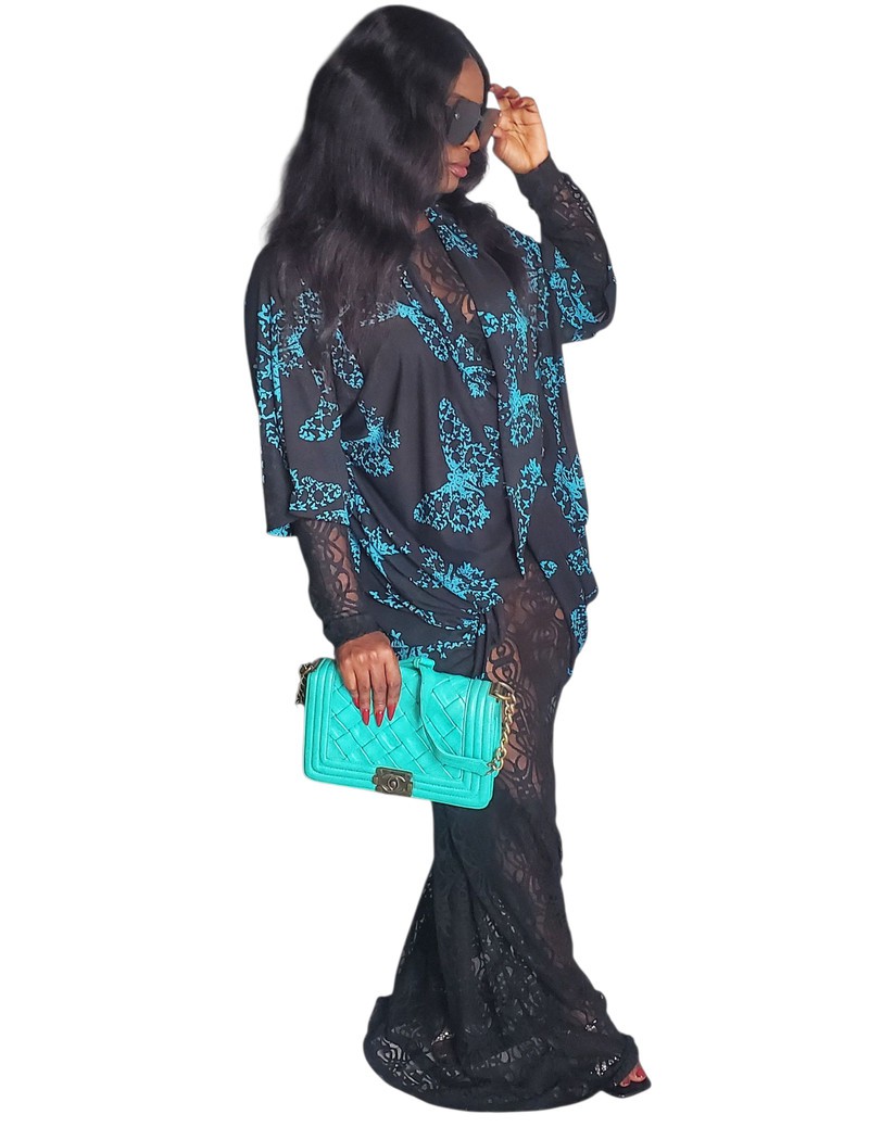 This two-piece ensemble is delicately hand from a rare lace fabric for the dress and a soft, stretch fabric for the tunic. The dress is designed as a high-neck, long-sleeve dress featuring a zipper at the back. The tunic top completes this sexy yet elegant look.