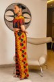 Par contre la longueur n'a pas été respectée et je n'ai pas retrouvée les manches volantes comme sur le mannequin. Les manches n'ont pas vraiment leur forme, on voit bien que vous avez pensé à plus économiser le pagne. dommage car ce sont elles qui rendent la robe plus belle et la longueur plus élégante.