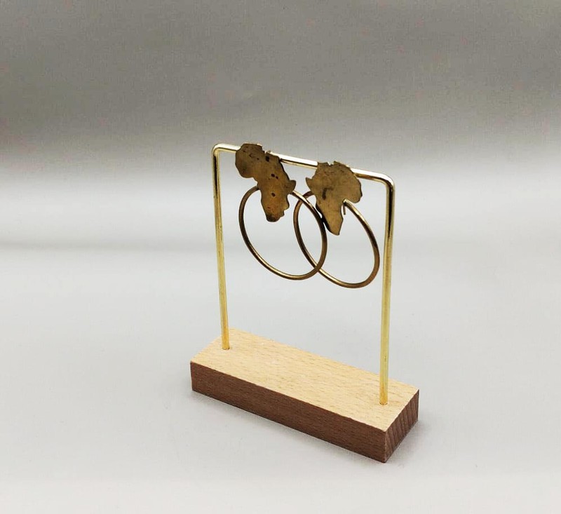 Jolie boucle d'oreilles en bronze et forme de carte d'Afrique, fabrication artisanale du Burkina Faso. Dimension : Hauteur : 6 cm Largeur : 4 cm
