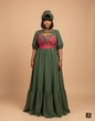 Radiate elegance in this sophisticated maxi-length gown, a stunning fusion of modern tailoring and rich African heritage. The dress is meticulously crafted from premium green crepe, chosen for its fluid drape and wrinkle-resistant quality, ensuring a flawless silhouette from day to night. At the heart of the design is a structured bodice featuring authentic hand-dyed Adire fabric in a mesmerizing pink and violet pattern, framed by a chic crescent cut-out and feminine puff sleeves. This vibrant ensemble, complete with a matching headwrap, is the ultimate choice for high-profile weddings, gala events, or festive celebrations, offering a bold yet graceful look for the woman who values artisanal craftsmanship and contemporary style.