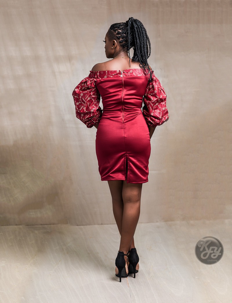 Women Dresses Mid-length Dresses name_en: Bodycon name_en: Red name_en: For Her name_en: Cotton name_en: Polyester