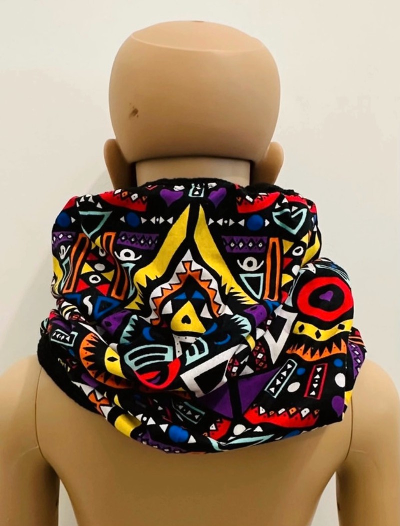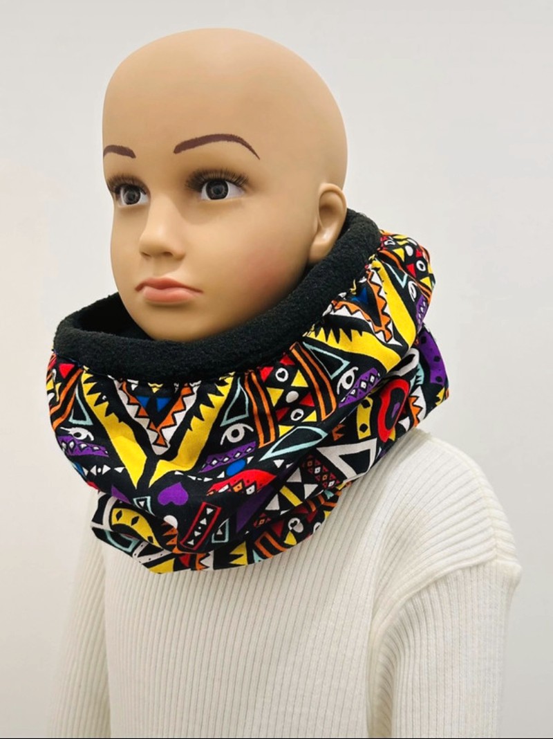 Cache-cou enfant en wax coloré et polaire – Édition joyeuse et chaude pour l’hiver