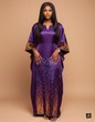 Command attention in this opulent Kaftan Maxi Dress, defined by its luxurious fabrication and dazzling sequin embellishments. Crafted from a rich, flowing satin/silk-blend fabric in a majestic deep purple hue, this kaftan offers a relaxed yet incredibly elegant drape. The wide, flowing sleeves feature shimmering gold sequin cuffs, while the body is adorned with striking vertical panels of purple and gold gradient sequins that catch the light beautifully and create a lengthening effect. This glamorous piece is the ultimate choice for elevated occasions, including formal evening events, celebratory parties, wedding guest attire, Eid/special cultural occasions, or making a sophisticated entrance at any luxury vacation destination.