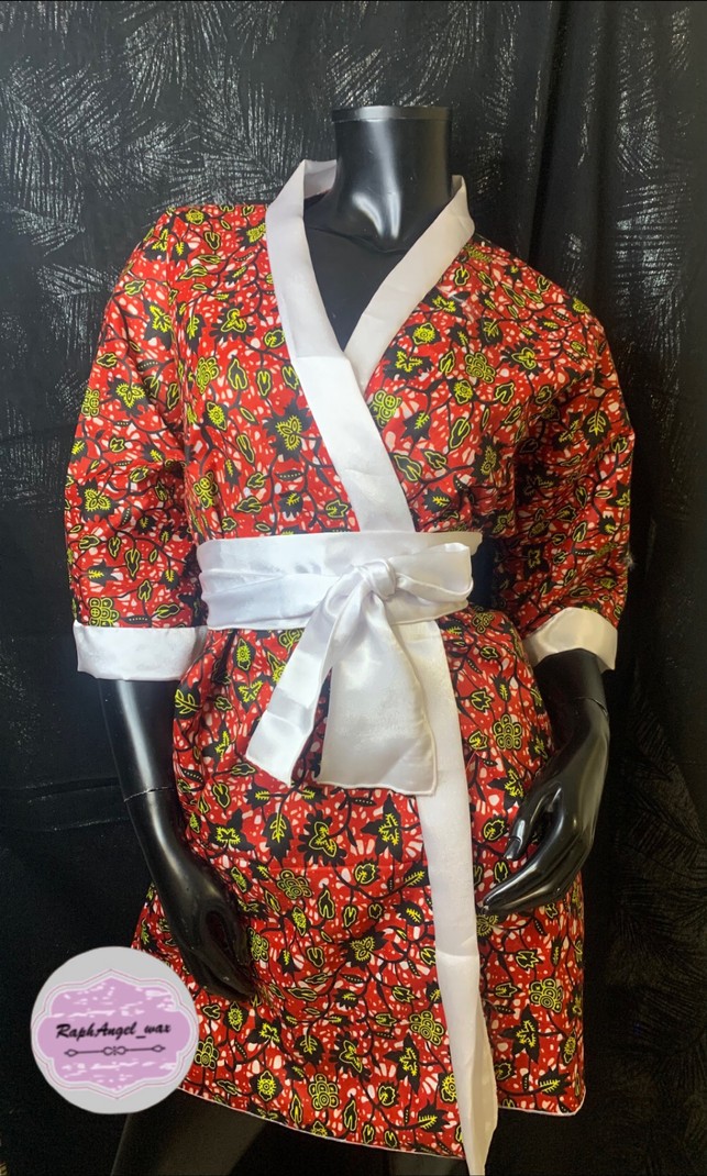 Kimono en wax, bordures et ceintures en satin