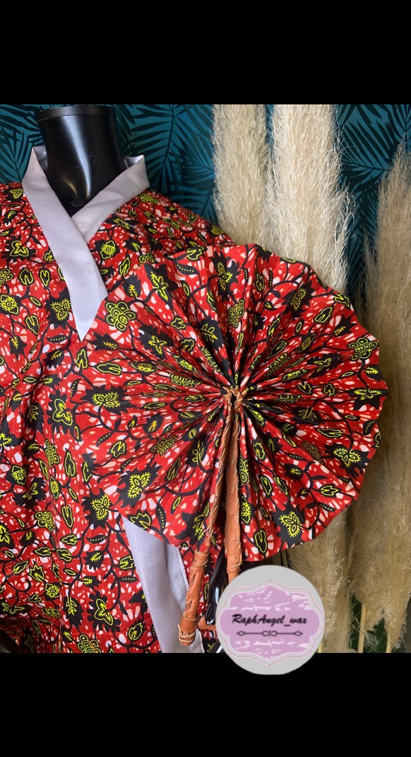 Kimono in wax, borders and satin belts It is ideally worn with the satin belt provided. Matching fan available with or separately This kimono is available in other colors and materials in our shop. Do not hesitate to contact me for more information or other photos.