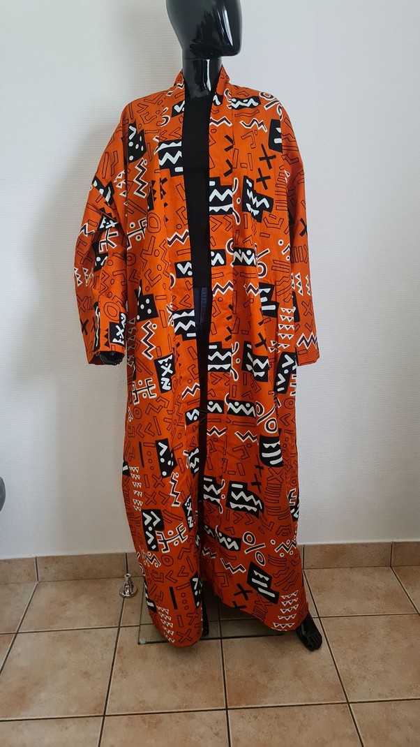 Affichez un style audacieux et raffiné avec ce magnifique Kimono longue confectionnée à la main., inspiré des motifs traditionnels africains (bogolan), tenue immédiatement le regard d'une ceinture ajustable à la taille et de manches larges pour une touche élégante et confortable. Caractéristiques : Tissu doux et respirant en coton Convient à de nombreuses morphologies Idéale pour : Les amateurs de mode afro Les événements Les vacances, sorties ou soirées Offrir un cadeau original et stylé Tailles : Disponible en plusieurs tailles — veuillez consulter notre guide des tailles pour choisir celle qui vous convient. Entretien : Lavage à la main ou en cycle délicat. Séchage à l'air libre recommandé pour préserver les couleurs.