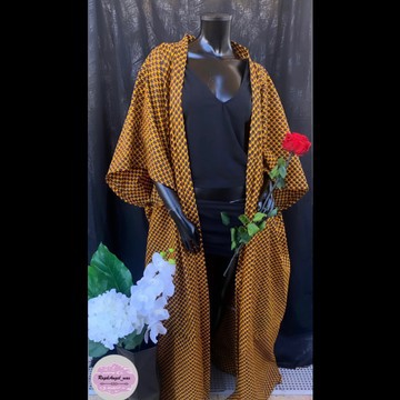 Kimono in wax, borders and satin belts It is ideally worn with the satin belt provided. This kimono is available in other colors and other materials in our shop. Do not hesitate to contact me for more information or other photos.
