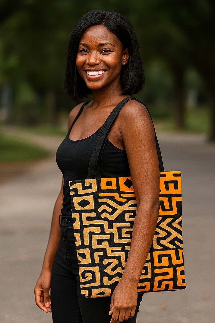 Take on the world in style with our Kuba Print Afrocentric Tote Bags. Show off your bold and adventurous side with its unique tribal design. Its large capacity allows you to carry all your essentials with ease. Make a statement and turn heads with this must-have accessory!