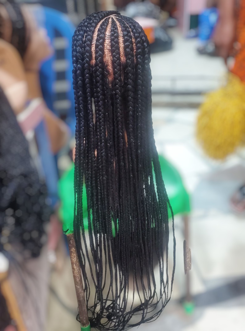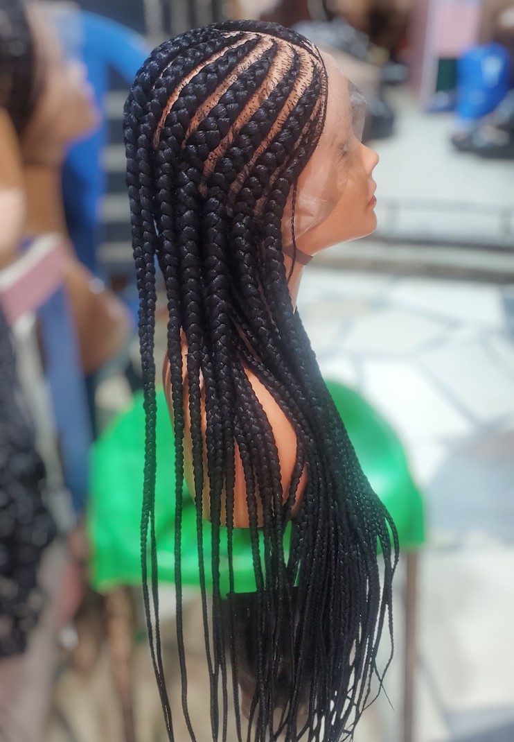 This hair is braided into cornrows of 34 inches length. The front design gives it an added unique look.
