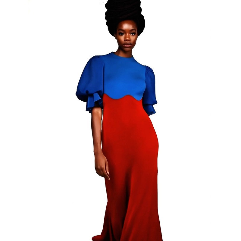 Experience the timeless glamour of the Layla Maxi Draped Cocktail Dress. Crafted from a silky-smooth rich fabric, this sophisticated maxi-length dress features formal puffed sleeves, a relaxed draped fit, a deep back cowl drape, and a striking combination of bold color blocks. Perfect for making a statement at any special event.