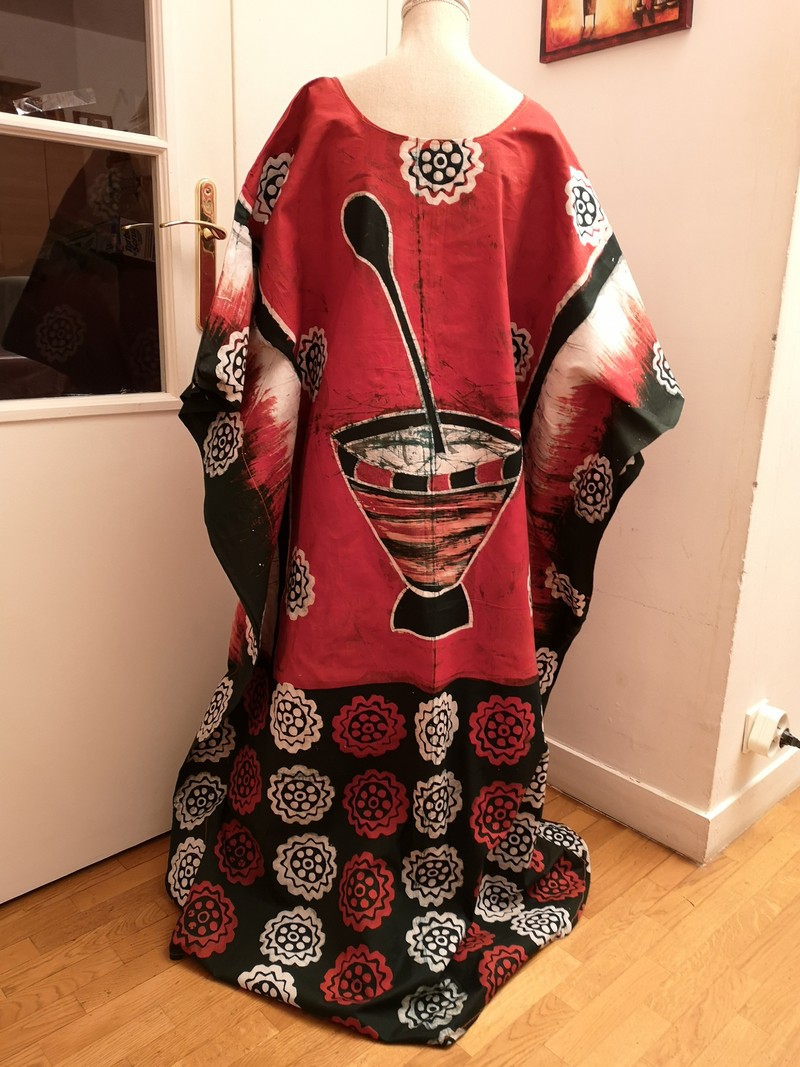 Beautiful long dress. This interior dress can be worn both at the beach and for your little outings in town - Length 145 cm - Sewing width 98cm X 2 with possibility of extension on 12 cm on each side - Round neckline in front and behind. - Boubou dress ideal for pregnant women, large sizes as well as small sizes from 40 - 100% cotton fabric - Fabric purchased in Benin (West Africa) - Hand or machine wash 30 degrees Size: 40 to 60