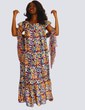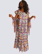 Très Jolie robe évasée imprimée en satin de soie longue. Manches fines bretelles, évasée, ce qui permet une meilleure aisance et la possibilité d’enfiler la robe quelque soit la taille. La robe est évasée, légère et Idéale pour l’été, se porte en toute occasion. Echarpe/foulard 2yards en mousseline de soie vendu avec.