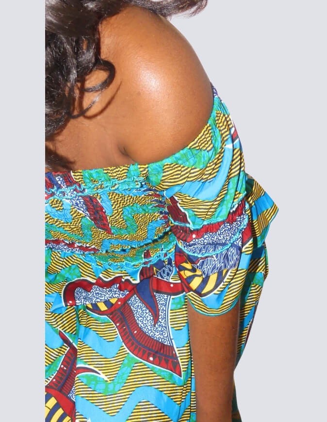 Très Jolie robe évasée imprimée bazin taille genoux. Manches courtes, robe évasée, extensible ce qui permet une meilleure aisance et la possibilité d’enfiler la robe quelque soit la taille. La jolie évasée, extensible, légère et Idéale pour l’été, se porte en toute occasion.