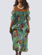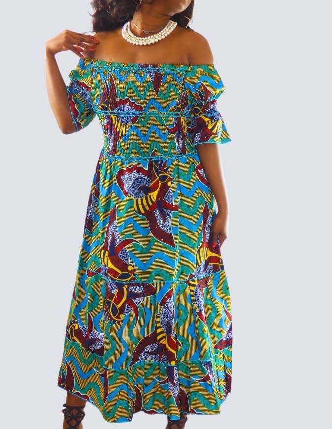 Women Dresses Long dresses name_en: Flared name_en: Green name_en: For Her name_en: Cotton name_en: Ankara
