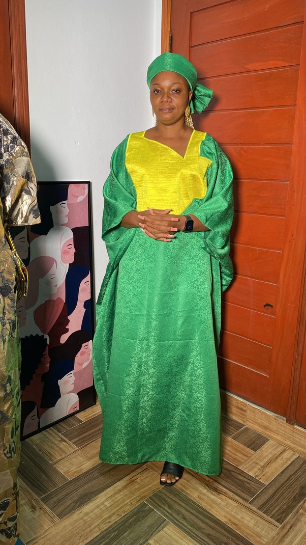 Très Beau boubou en tissu Damask brodé avec une corde interne et un Foulard pour femme adapté à toutes les tailles et les occasions. Si vous souhaitez vous démarquer pendant les cérémonies et les sorties c’est fait pour vous.