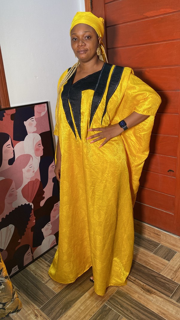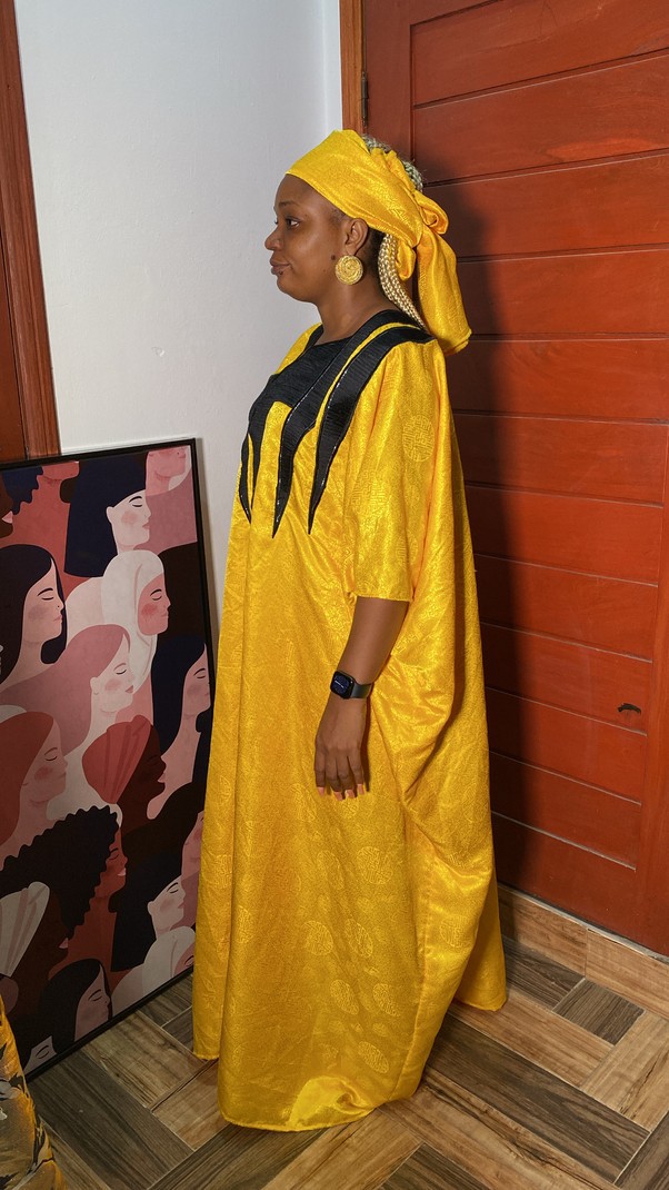 Très Beau boubou en tissu Damask brodé avec une corde interne et un Foulard pour femme adapté à toutes les tailles et les occasions. Si vous souhaitez vous démarquer pendant les cérémonies et les sorties c’est fait pour vous.