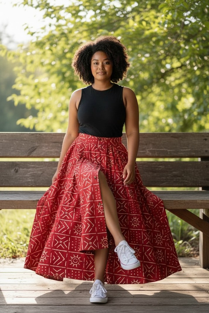 Women Skirts Maxi skirts name_en: Loose name_en: Red name_en: For Her name_en: Cotton