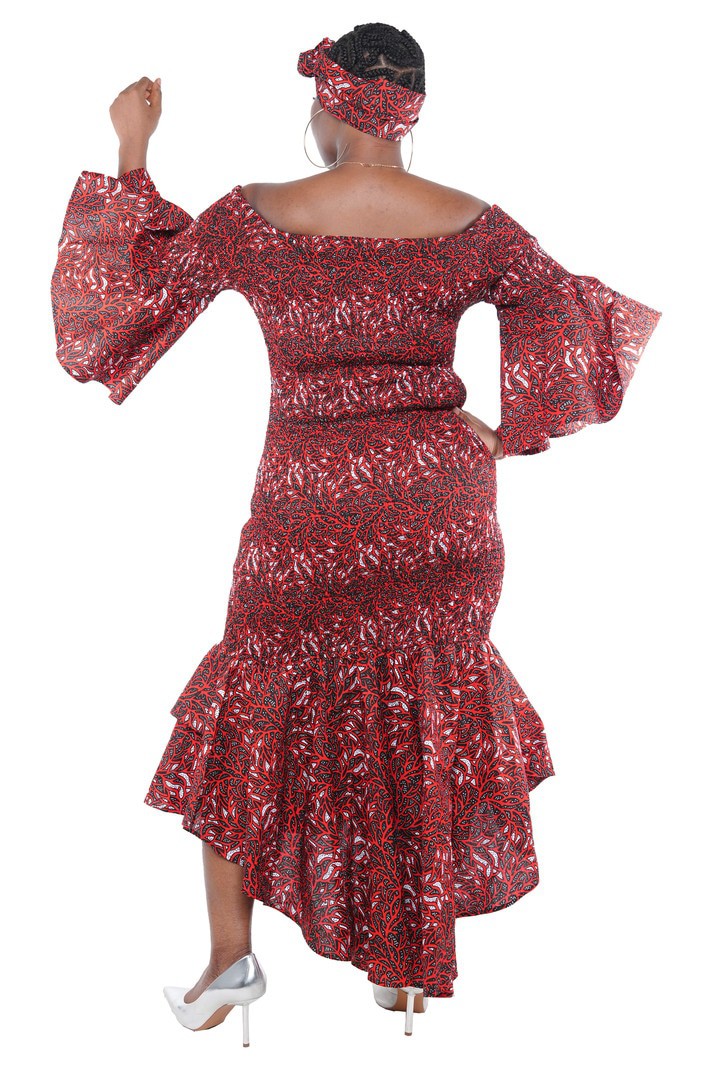 This Elegant Long Smoked Mermaid Fish Tail High Low Dress Made with 100% Cotton, the dress is smoked with elastic and can fit most sizes. Hand wash in cold water. Gentle dry cycle. The mermaid style skirt flares out gracefully, creating an elegant flow with every step. Crafted with light weight, breathable fabric, this dress is perfect for formal events, evening parties or special occasions.