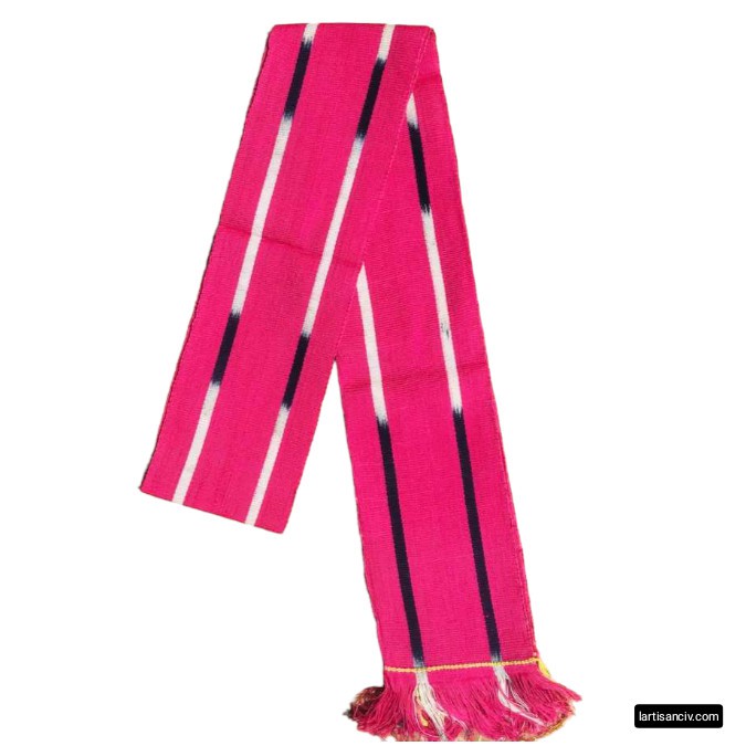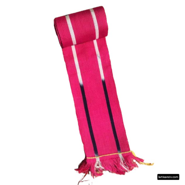 Idéale pour des événements haut de gamme (mariages, galas, festivals culturels), cette écharpe tissée à la main apporte une touche unique et intemporelle à vos tenues ou décorations. Son motif Baoulé, symbole d’héritage ivoirien, en fait une pièce de distinction pour marquer les célébrations spéciales et captiver vos invités.