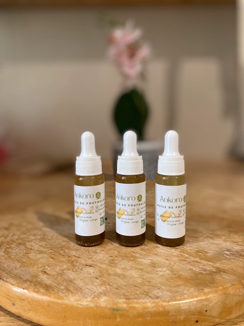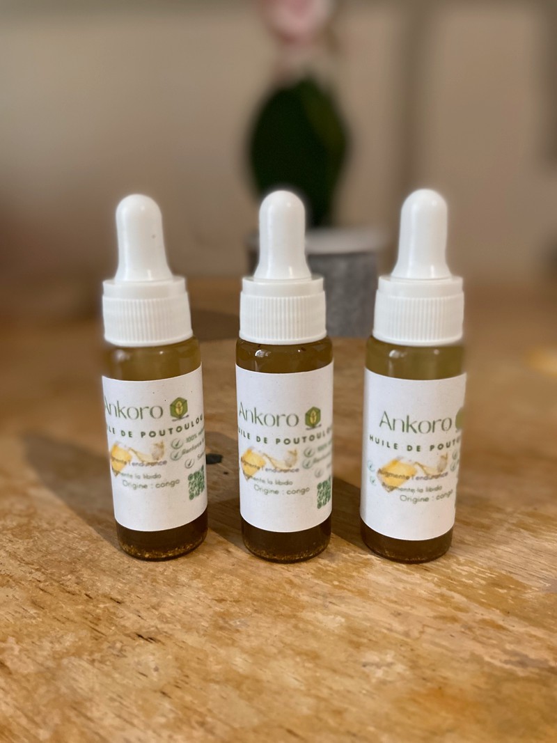 Huile fait à base La poudre ankoro (poutoulou) c’est l’écorce d’un arbre qui pousse dans la savane congolaise dans la région du Katanga ce produit est 100% naturel et bio.