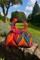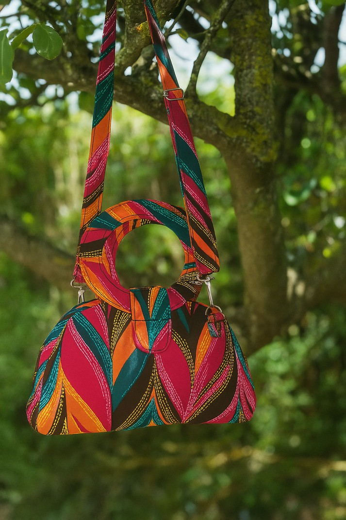 Pensé pour accompagner vos journées avec style et praticité, le sac Luna Solena conjugue savoir-faire artisanal et design affirmé. Son tissu matelassé multicolore aux motifs vibrants apporte une touche solaire à votre silhouette, tandis que ses anses circulaires rigides offrent une signature visuelle forte.