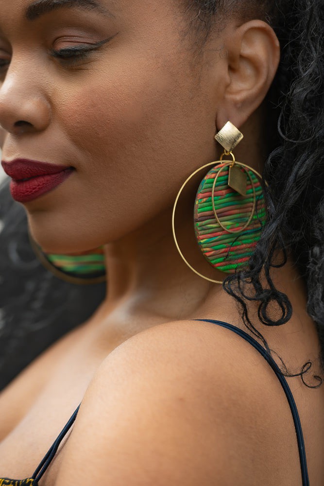 Why do ordinary when you can be extraordinary with these handmade earrings? This pair is a perfect addition to your accessory collection. The print gives the pair an extra edge and you'll definitely feel like a Queen.